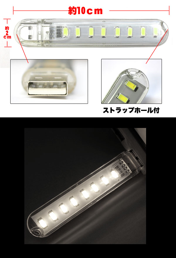 あきばお~USBメモリー型 USB接続 8LEDライト 昼白色