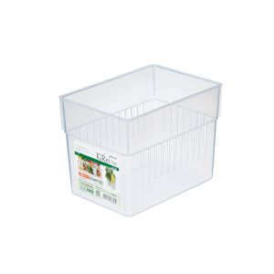 野菜室は「立てて収納」が使いやすさの決め手。野菜室は「立てて収納」が使いやすさの決め手。野菜は育った状態と同じようにして保存するのが長持ちのコツ。仕切付。カラー:クリアーサイズ:10.2×14.9×14Hcm材質:ポリプロピレン