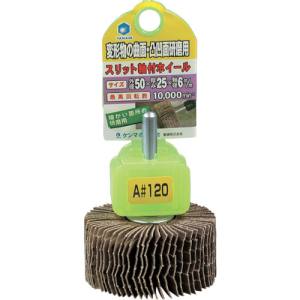 研磨布ペーパーにスリットが入っていますので、凹凸のあるワークにもピッタリフィットします。金属、木工の凹凸部の研磨、バリ取り外径(mm):50幅(mm):25軸径(mm):6ヤナセ HCスリット軸付ホイール 50X25X6 #120研磨布ペーパー