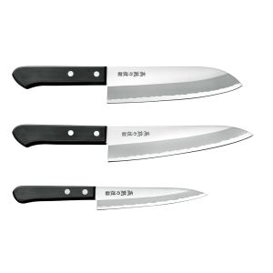 熟練の技巧、信頼の日本製。金属加工の町、新潟県燕市で作られた三徳包丁です。シンプルで使いやすい形状、刀身にマーキング入り。キッチンバサミもついているので便利です。※キッチンバサミは中国製です。【商品サイズ】三徳包丁 全長/280mm、刃渡り/165mmキッチンバサミ/205×75×10mm【材質】刃部/ステンレス刃物鋼、ハンドル/PBT樹脂・ABS樹脂