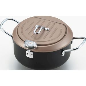 オールステンレス製でお手入れがしやすく、角型なので、大きめの食材も揚げやすい。サイズ:約288×218×110mm 深さ:75mm重量:約650g容量:2500ml適正油量:約1000ml材質:ステンレス(本体0.7mm、枠0.5mm)製造国:日本